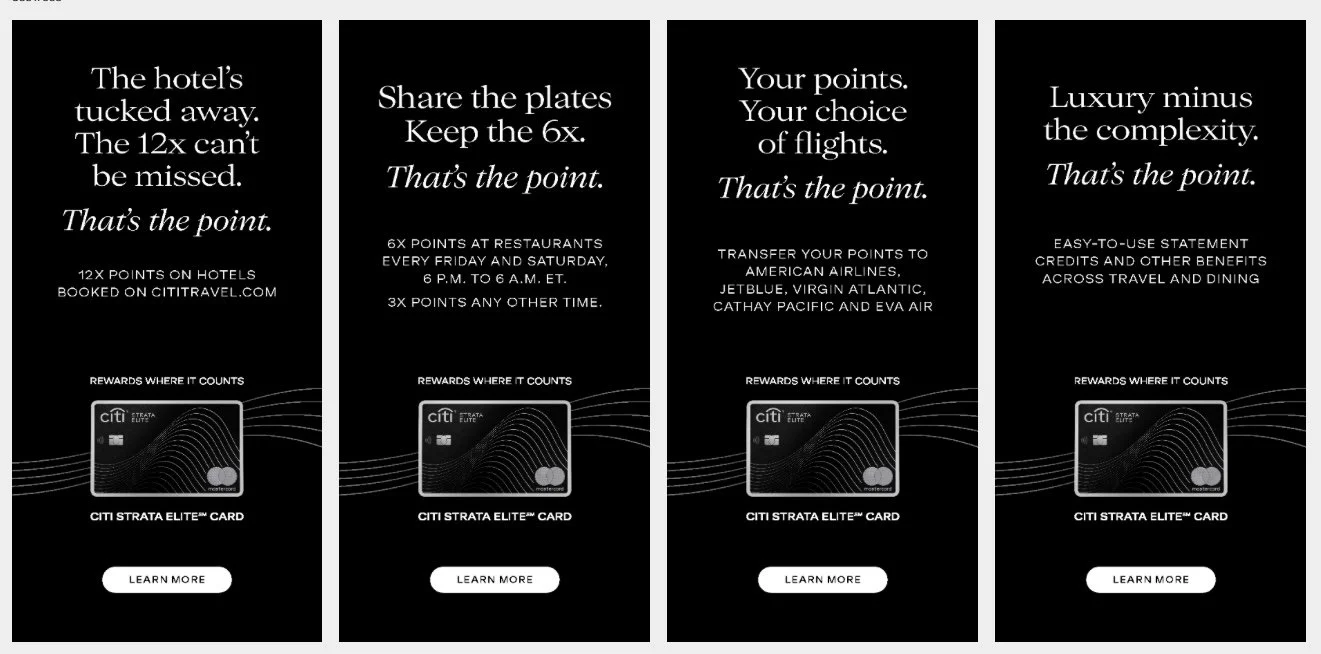 Citi launched a new luxury credit card with best in class benefits for travel and dining. In an often-serious world of credit card marketing, we took an approach of being sharp, dry, and getting to the point of why people like getting new cards.